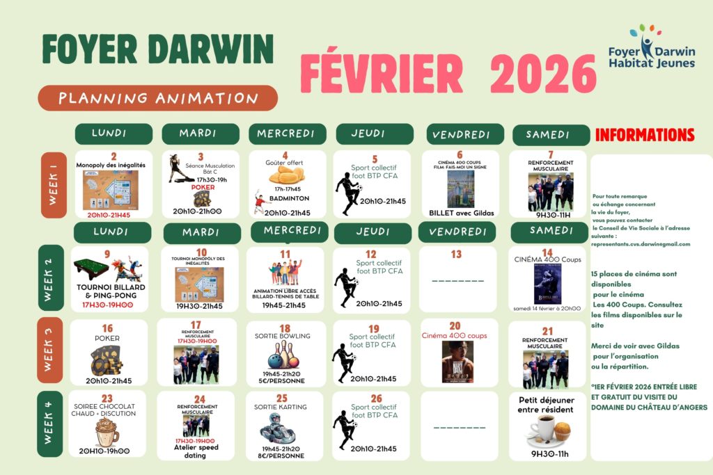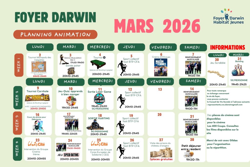 Le Foyer Darwinvous accueilleà Angers