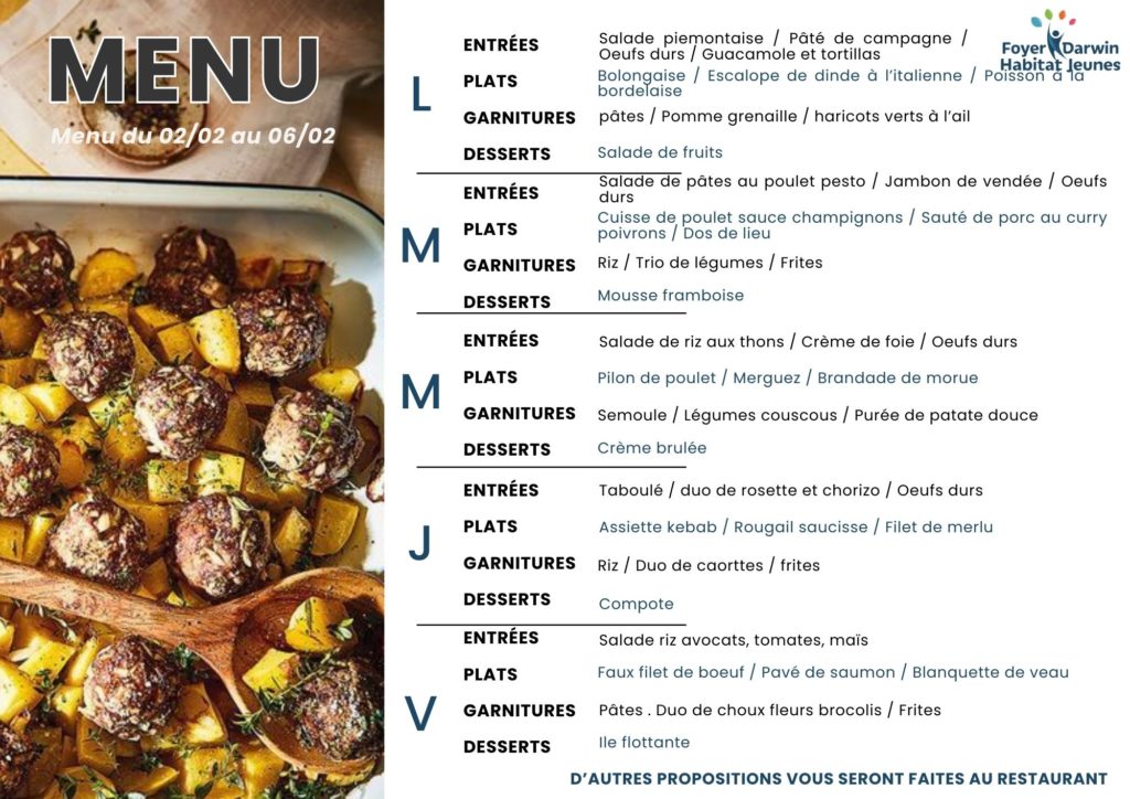 Menus du 2 au 6 février 2026