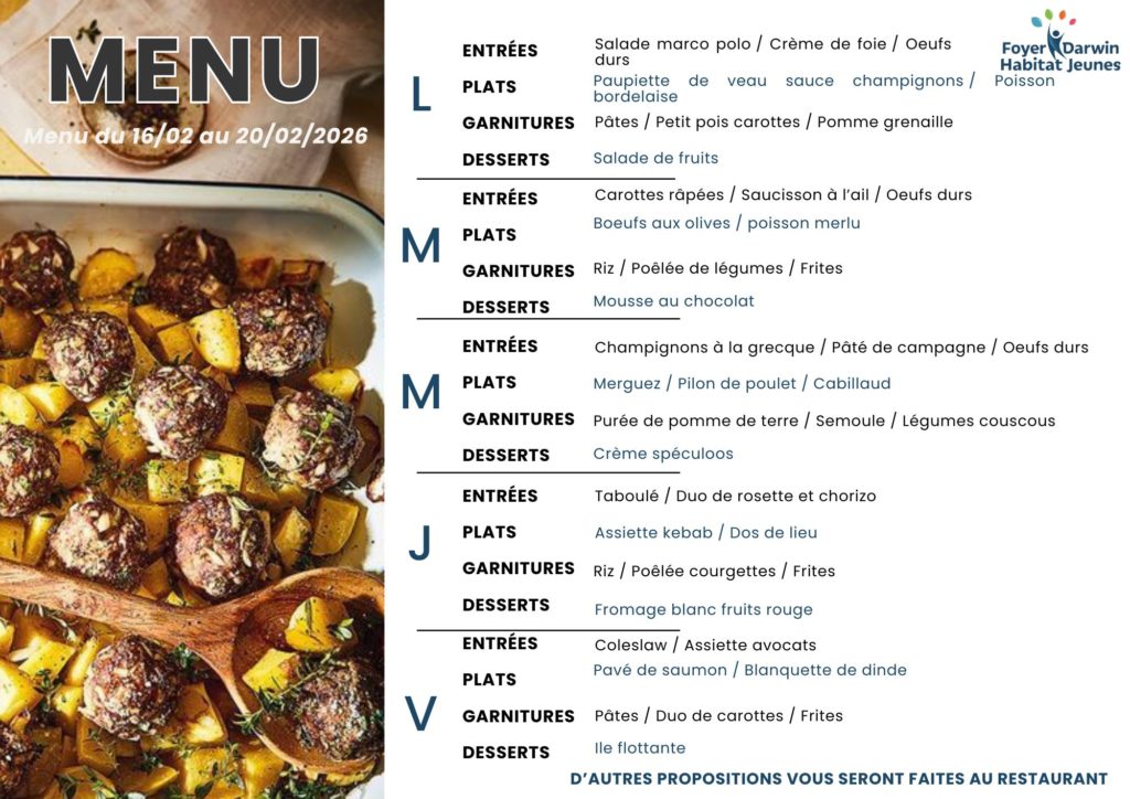 Menus du 16 au 20 février 2026