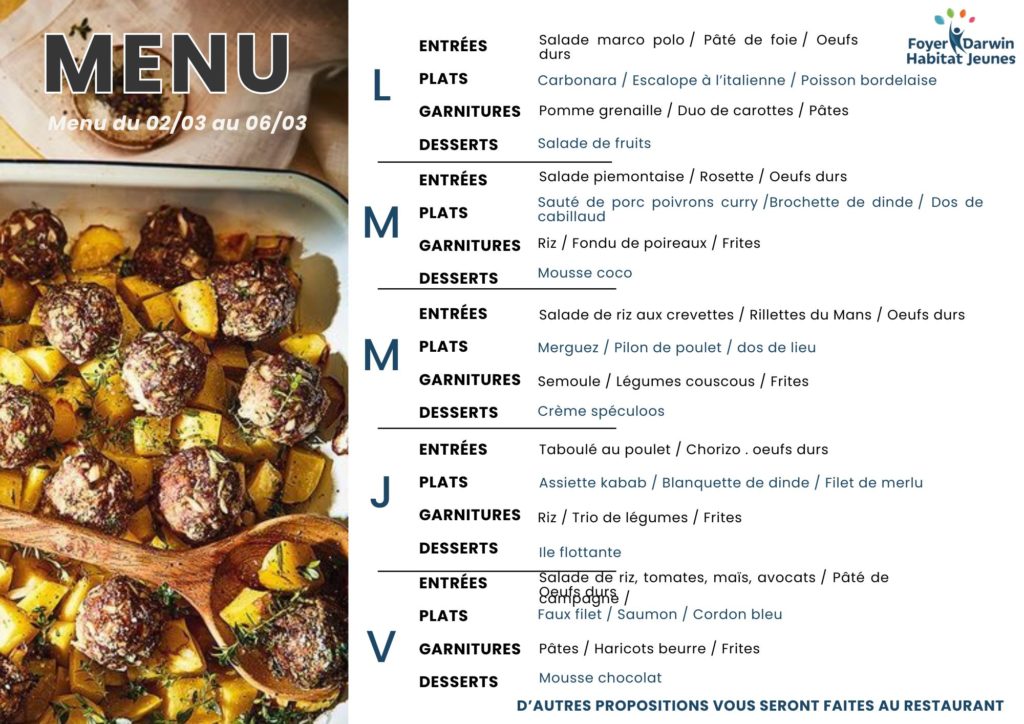Menus du 2 au 6 mars 2026