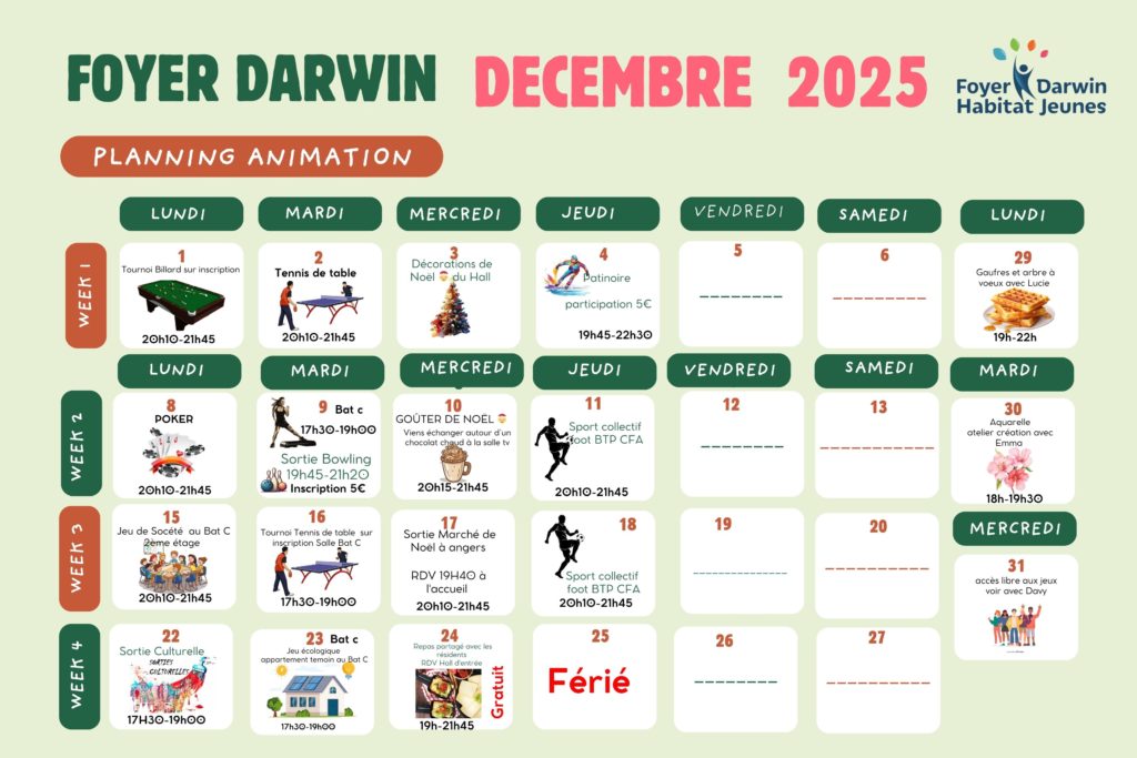 Planning d'Animations Décembre 2025