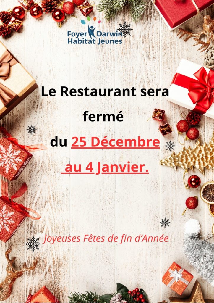Fermeture Restauration du 25 décembre au 4 janvier