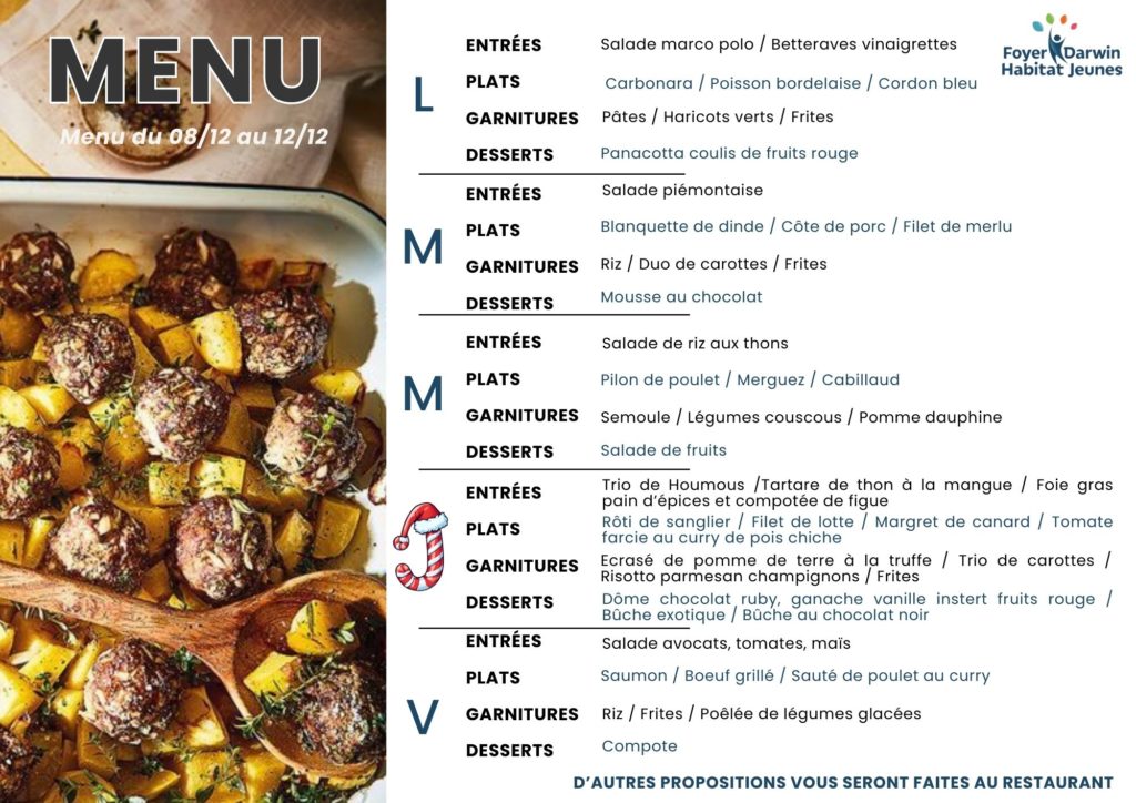 Menus du Midi – Semaine du 8 au 12 Décembre 2025